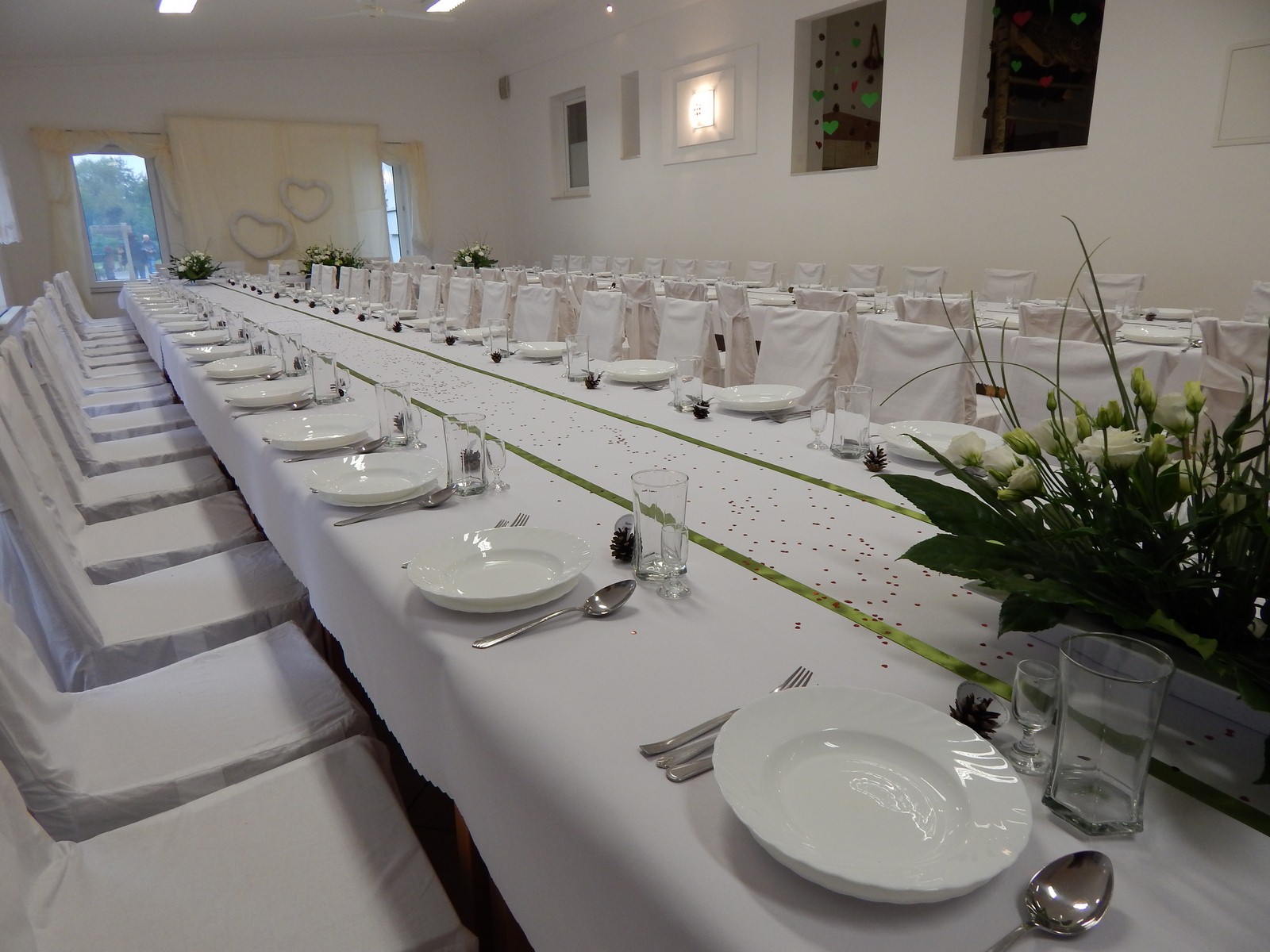 Ośrodek dzięki urokliwemu położeniu i infrastrukturze jest przygotowany do profesjonalnej organizacji ważnych imprez okolicznościowych. Dwie sale w Smołdzińskim Lesie oraz jedna w Łebie-Nowęcinie, mogą jednocześnie przyjąć i obsłużyć kilka niezależnych imprez. Dobra staropolska kuchnia jak i wykwalifikowana obsługa będzie spełniała Państwa oczekiwania. Imprezy okolicznościowe organizowane przez nasz ośrodek cieszą się dobrą opinią naszych Gości, którzy przyjeżdżają do nas z różnych stron Polski (Lębork, Słupsk, Warszawa, Kraków itd.). Organizujemy wesela, przyjęcia komunijne, przyjęcia urodzinowe, przyjęcia imieninowe, imprezy integracyjne, stypy, imprezy zakładowe, zloty, konferencje, bankiety i spotkania biznesowe. Dla Gości uczestniczących w naszych imprezach jesteśmy w stanie zapewnić nocleg na terenie ośrodka. Osoby z zapewnionym noclegiem mogą przyjechać przed spotkaniem i zająć wcześniej pokoje (najlepsza opcja w przypadku wesel, kościół znajduje się obok). Na życzenie jesteśmy w stanie zapewnić transport. Osoby uczestniczące w naszych imprezach w Smołdzińskim Lesie, mają możliwość korzystania z całej infrastruktury ośrodka. Na terenie 3ha znajduje się m.in. sala dyskotekowa, sala bilardowa, sale projekcyjne, świetlice, a także boiska (do koszykówki, piłki nożnej, piłki siatkowej). Podczas organizacji imprez okolicznościowych jesteśmy w stanie pomóc w przygotowaniu programu, który może zostać wzbogacony o różnego typu atrakcje jak np. karaoke, duży dmuchaniec dla dzieci, oświetlenie nastrojowe.